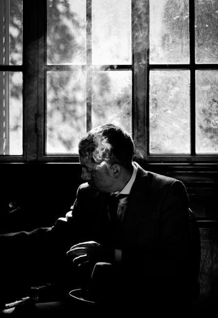 The PDF reveals a man seemingly unable to fully connect with the world‚ his face reflecting an internal struggle to find the right words. His silence for so many years suggests a profound sense of guilt and isolation. He embodies the enduring psychological impact of witnessing a tragic event. Studying his portrayal within the PDF allows for a deeper understanding of his withdrawn nature and the weight of his unspoken burden.